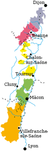 Du nord au sud : les vignobles de Chablis, du Grand Auxerrois, de Tonnerre, de Joigny et de Vézelay ; les vignobles de la Côte de Nuits, Hautes Côtes de Nuits et du Châtillonnais ; les vignobles de la Côte de Beaune et des Hautes Côtes de Beaune ; les vignobles de la Côte Chalonnaise et du Couchois et enfin, le vignoble du Mâconnais.