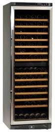 DUO: Armoire à vin deux compartiments séparés: 1 pour les blancs (5° à 12°C) et 1 pour les rouges (12° à 18°C). Capacité: 155 bouteilles (type 75cl) 14 clayettes coulissantes en bois massif - Système d'hygrométrie - Encastrable. Element de chauffage si utilisation en pièce non chauffée. Dimensions: 180 h x 59,50 l x 68,50 p